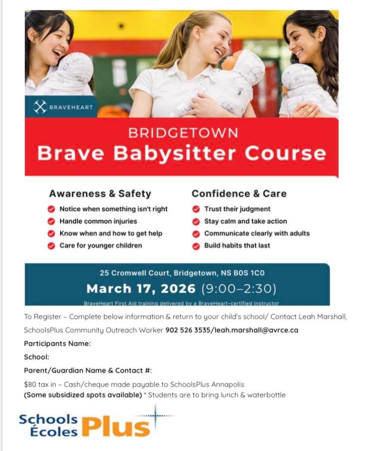 SchoolsPlus Community Outreach Worker 902 526 3535/leah.marshall@avrce.ca